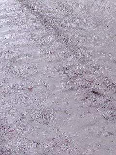 Известковый щебень размяк, превращается в кашу и развозится на колесах по всему селу.